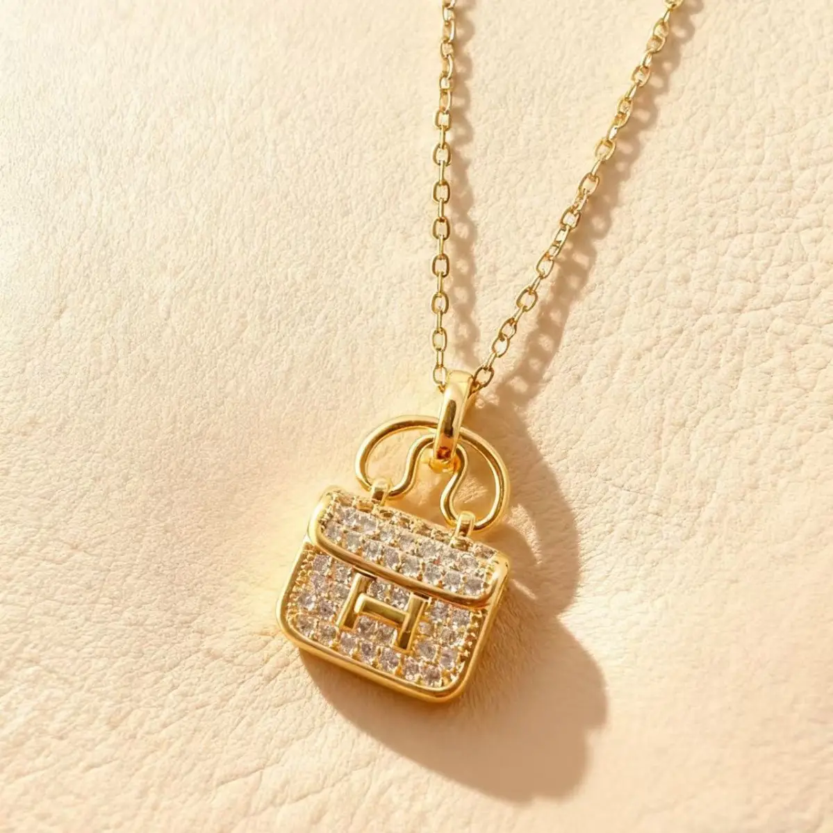 Indulge in the epitome of elegance with our Luxury Pendant Necklace, a masterpiece that combines sophistication with contemporary fashion. This exquisite piece features a meticulously crafted mini handbag pendant adorned with sparkling diamonds and the signature “H” logo, creating an instant statement of luxury and refinement.