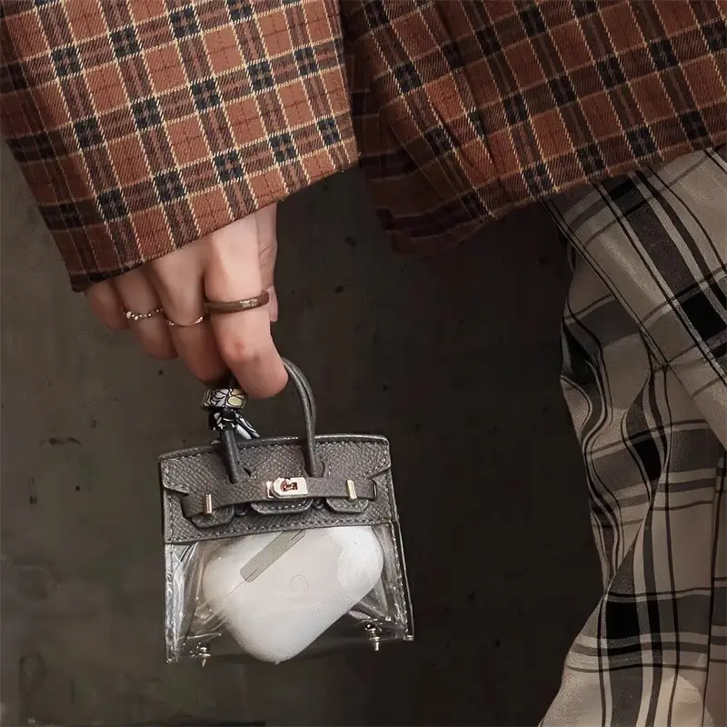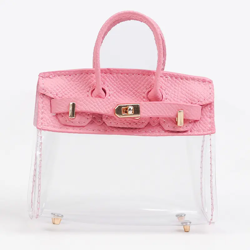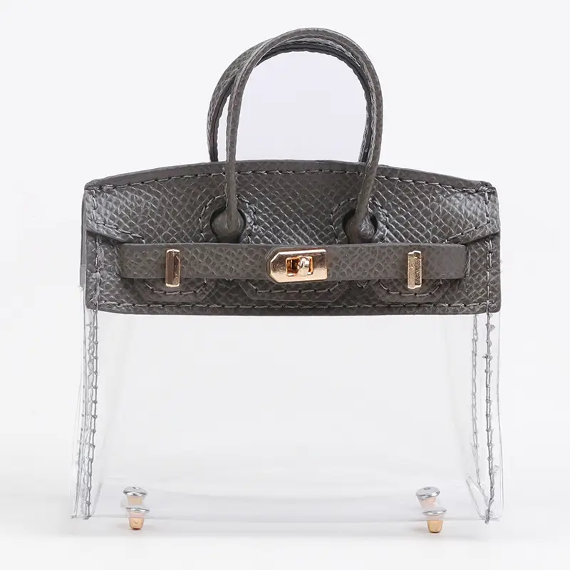 The thoughtfully designed dimensions (8.5cm x 7.5cm x 3.5cm, with 10.5cm height from bottom to top) provide just enough space for your smallest necessities like keys, cards, or lipstick. Some models incorporate transparent elements, adding visual interest and allowing glimpses of the contents within. The micro bag collection includes various styles, from solid colors to combinations with transparent sections, and even versions with decorative scarf handles.