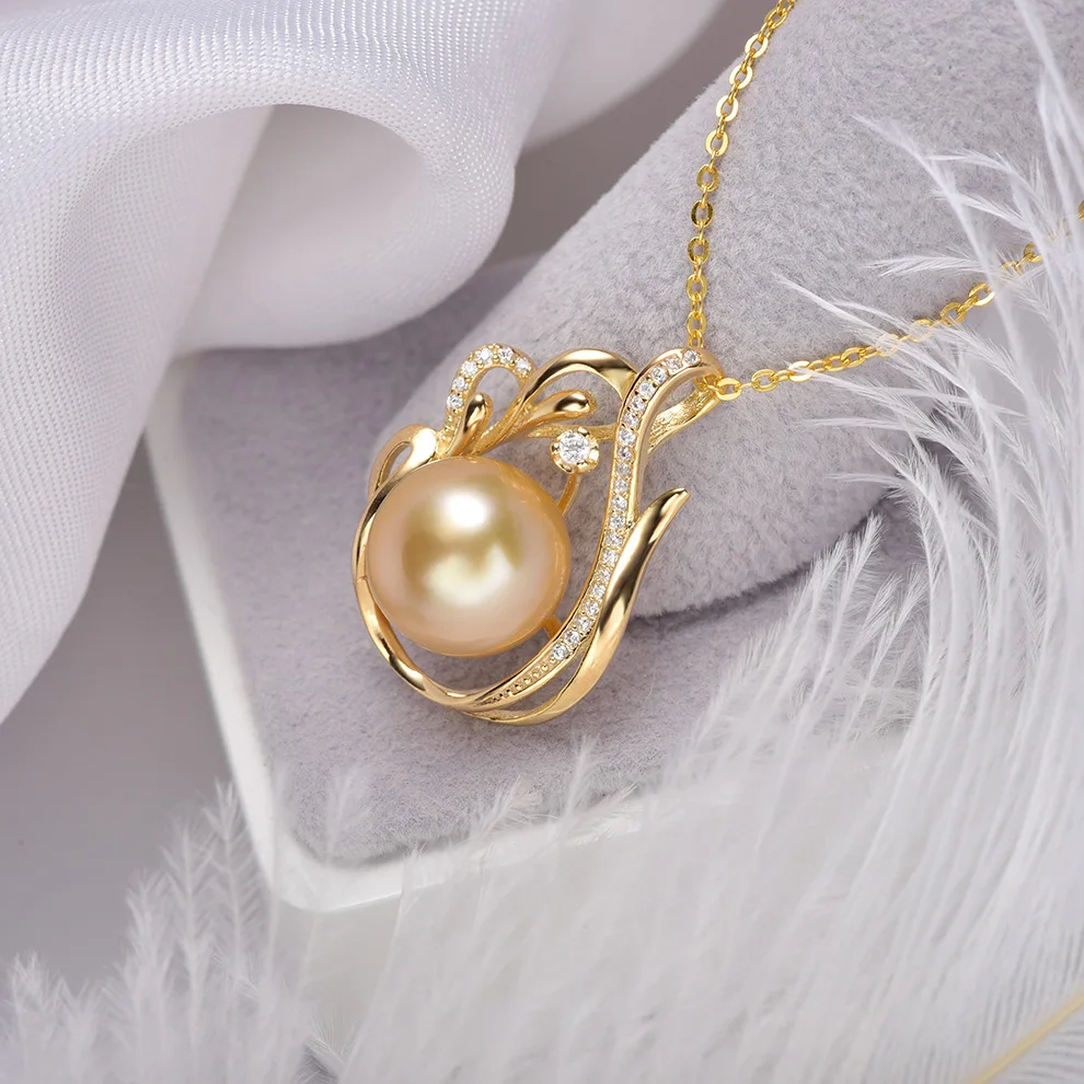 This stunning south sea pearl necklace is the perfect accessory to add a touch of elegance and sophistication to any outfit. The elegant pendant has a golden South Sea Pearl, renowned for its high luster and round shape, originating from the South Pacific.